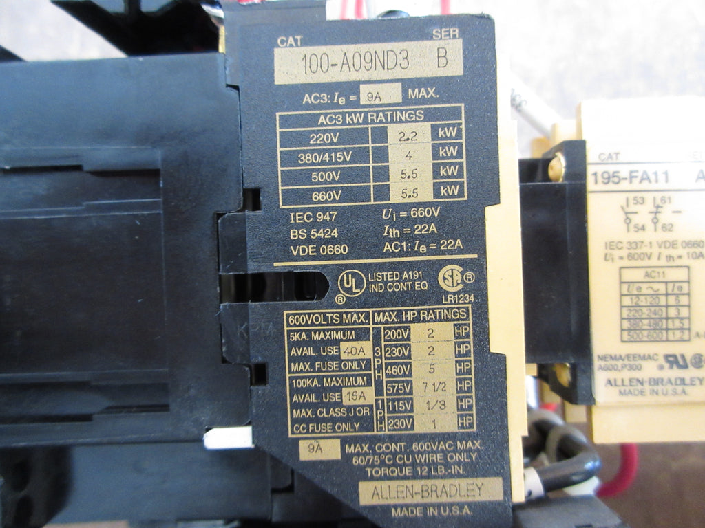 Allen-Bradley Reversing Starter Part #: 100-A09ND3 / 193-A2F1...