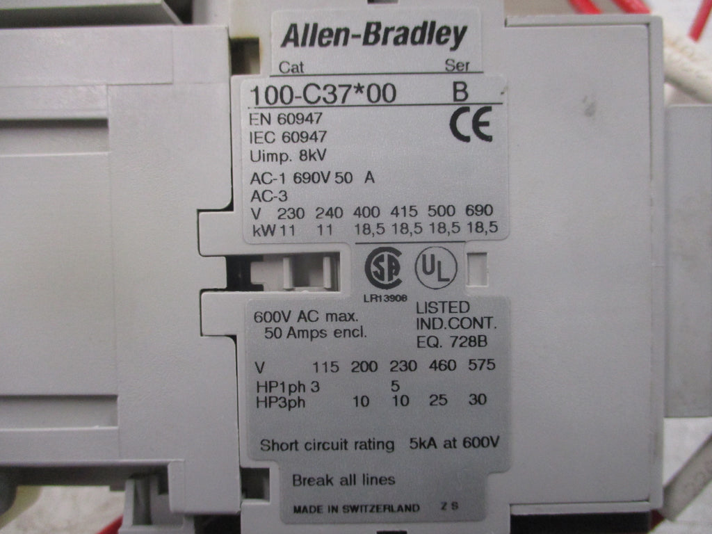 Allen-Bradley Reversing Starter 100-C37*00/193EA2HC 120V Coil Trip: 12-37A (2) Aux Contact Blocks Used LOC 56D5-7