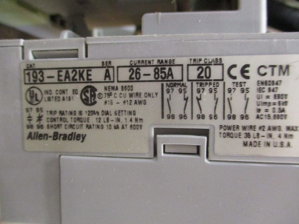 Allen-Bradley Reversing Starter 100-C72*00 / 193-EA2KE 120V Coil Trip: 26-85A
