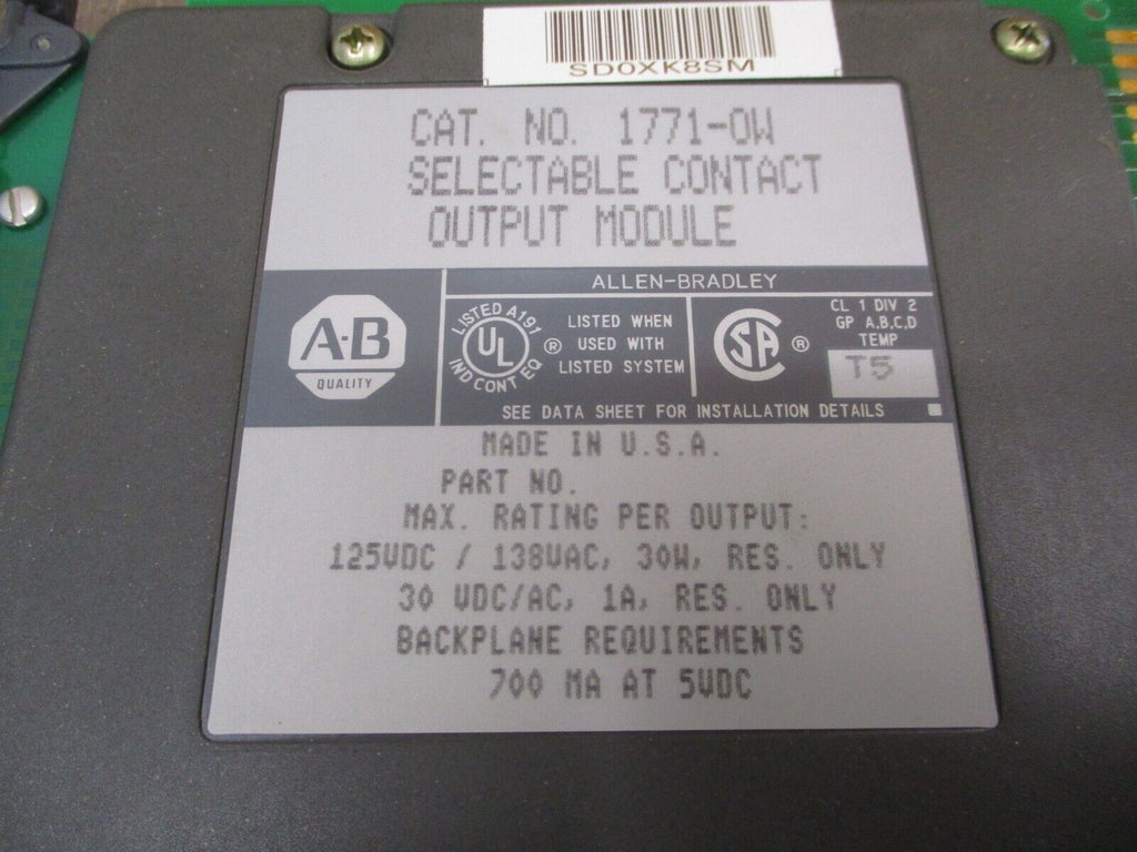 Allen-Bradley Selectable Contact Output Module 1771-OW 700mA @ 5VDC Used