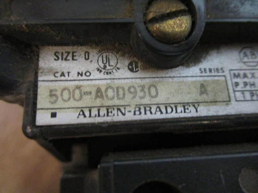 Allen-Bradley Size 0 Contactor 500-AOD930 Ser. A 115-120V Coil...