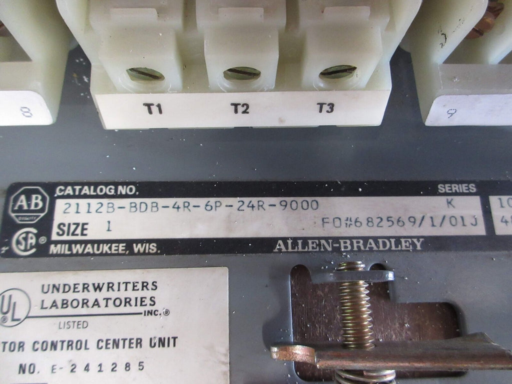 Allen-Bradley Size 1 MCC Bucket 2112B-BDB-4R-6P-24R-9000 480V 3Ph 60Hz 120V Coil