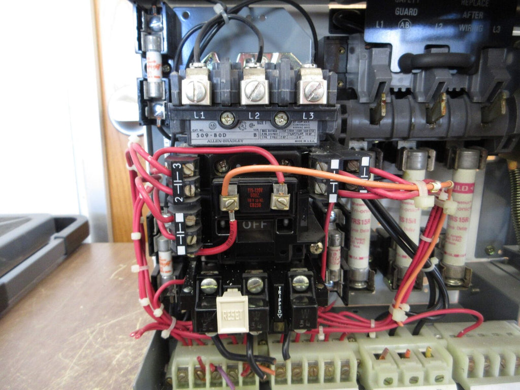 Allen-Bradley Size 1 MCC Bucket 2112B-BDB-4R-6P-24R-9000 480V 3Ph 60Hz 120V Coil Allen-Bradley Size 1 MCC Bucket Part #: 2112B-BDB-4R-6P-24R-9000 480 V 3Ph 60 Hz 120 V Coil Contactor: 509-BOD Fusible *No Door* Used Loc: AB11-8155 / AB41U2