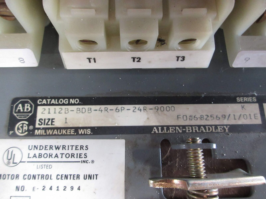 Allen-Bradley Size 1 MCC Bucket 2112B-BDB-4R-6P-24R-9000 480V 3Ph 60Hz 120V Coil