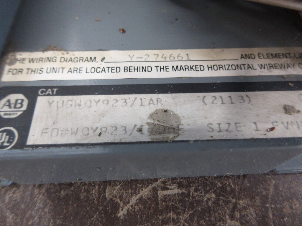 Allen-Bradley Size 1 MCC Bucket YUGWQY923/1AR 480V 3Ph 60Hz 12...