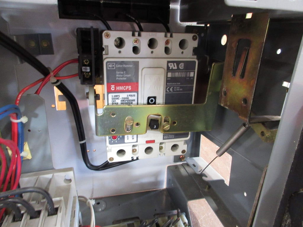 Allen-Bradley Size 1 MCC Bucket YUGWQY923/1AR 480V 3Ph 60Hz 120V Coil Allen-Bradley Size 1 MCC Bucket Part #: 2113B-BDBD-7FEC2A-37CA-98 Q 480 V 3Ph 60 Hz 120 V Coil Contactor: 509-BOD-XXX Overload: 592-EC2AC Breaker: HMCPS003A0C w/ Door *No Shelf* *No Door Hinge Pins* Used Loc: AB11-8180 / AB29C6