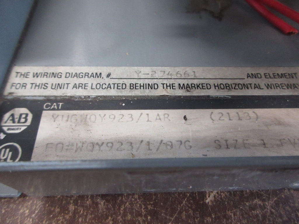 Allen-Bradley Size 1 MCC Bucket YUGWQY923/1AR 480V 3Ph 60Hz 12...