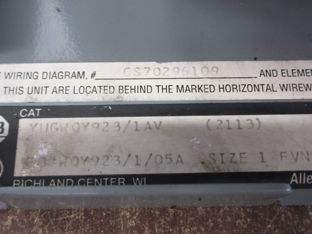 Allen-Bradley Size 1 MCC Bucket YUGWQY923/1AV 480V 3Ph 60Hz 120V Coil w/ Door