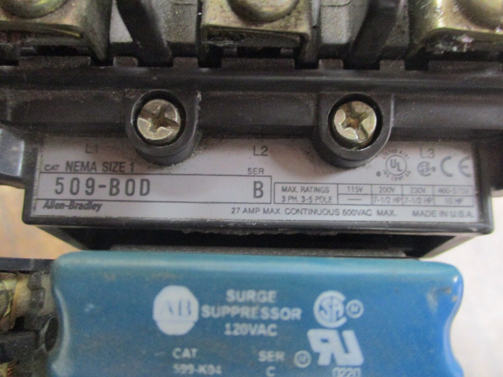 Allen-Bradley Size 1 Starter 509-B0D 120V Coil 27A 600V Used
