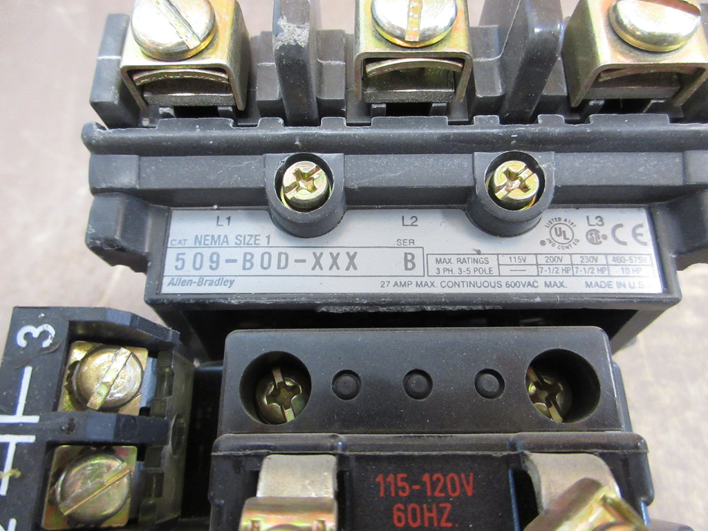 Allen-Bradley Size 1 Starter 509-BOD-XXX / 592-EC2BC 115-120V Coil Trip: 3-15A