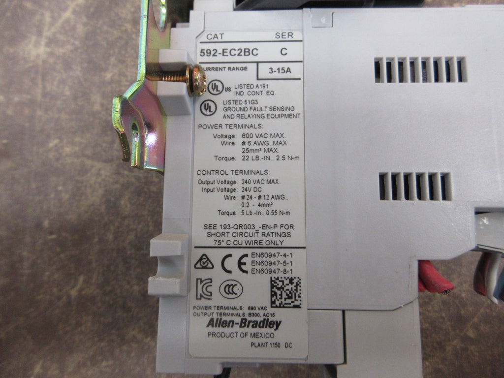 Allen-Bradley Size 1 Starter Part #: 509-BOD-XXX / 592-EC2BC 115-120 V Coil Trip: 3-15 A 193-EIMD Module Used Loc: 57D4-26