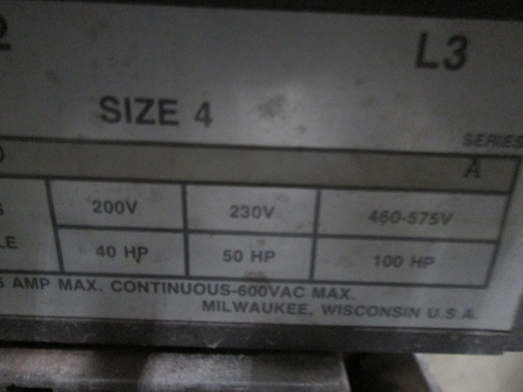 Allen-Bradley Size 4 Fusible Combination 509-EOD 135A 600V 460-480V Coil Used