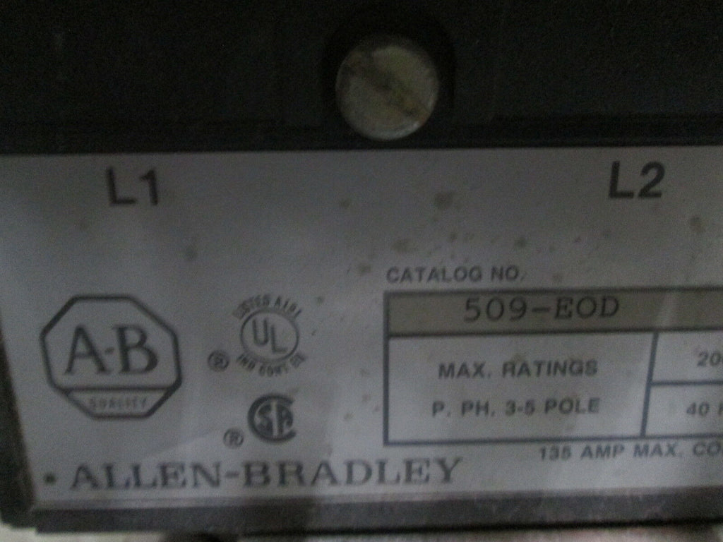 Allen-Bradley Size 4 Fusible Combination 509-EOD 135A 600V 460-480V Coil Used_x000D_ Condition: UsedMPN: 509-EODBrand: Allen-Bradley Allen-Bradley Size 4 Fusible Combination 509-EOD 135A 600V 460-480V Coil Used Allen-Bradley Size 4 Fusible CombinationPart #: 509-EOD 135A 600V 460-480V Coil UsedLOC AB7K1-6 / AB7G2 Allen-Bradley Size 4 Fusible Combination Part #: 509-EOD 135A 600V 460-480V Coil Uséd LOC AB7K1-6 / AB7G2