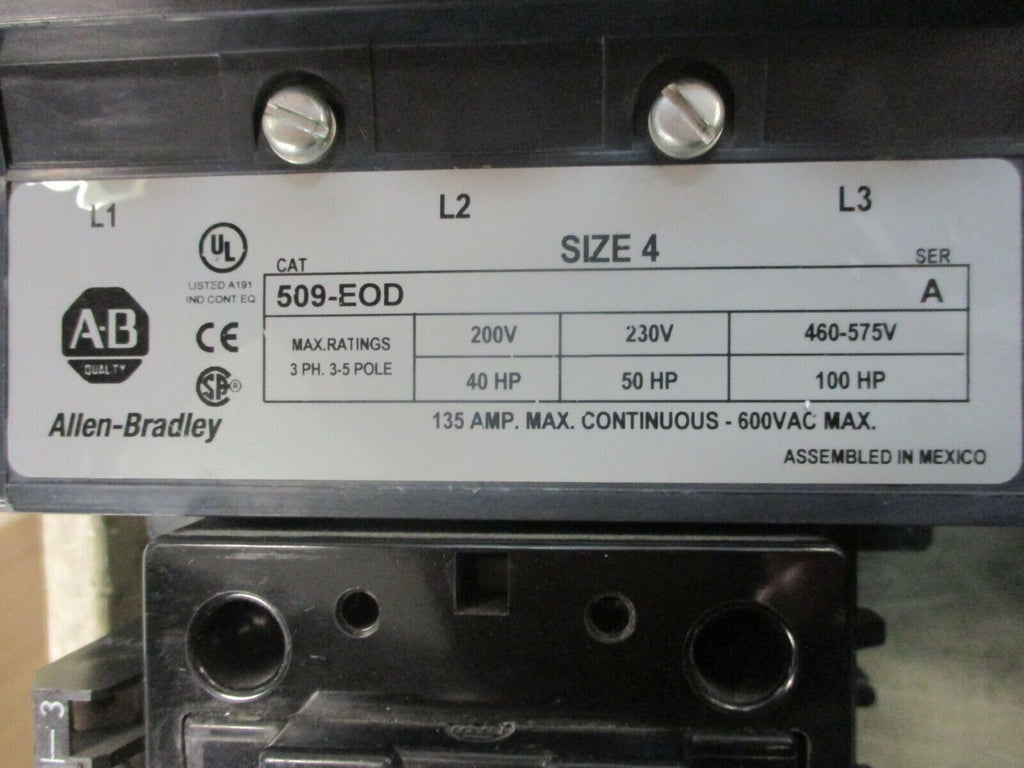 Allen-Bradley Size 4 Starter 509-EOD w/ PN-16156 Overload 135A 600V Used
