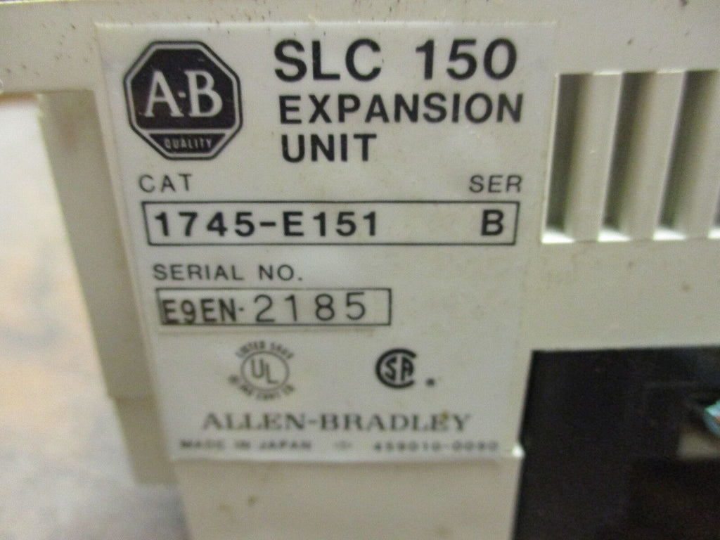 Allen-Bradley SLC 150 Expansion Unit 1745-E151 Ser B Broken Mounting Foot* Used Condition: UsedMPN: 1745-E151Brand: Allen-Bradley Allen-Bradley SLC 150 Expansion Unit 1745-E151 Ser B Broken Mounting Foot* Used Allen-Bradley SLC 150 Expansion Unit Part #: 1745-E151 Ser B *Broken Mounting Foot*UsedLOC 18B4-21 Allen-Bradley SLC 150 Expansion Unit Part #: 1745-E151 Ser B *Broken Mounting Foot* Uséd LOC 18B4-21