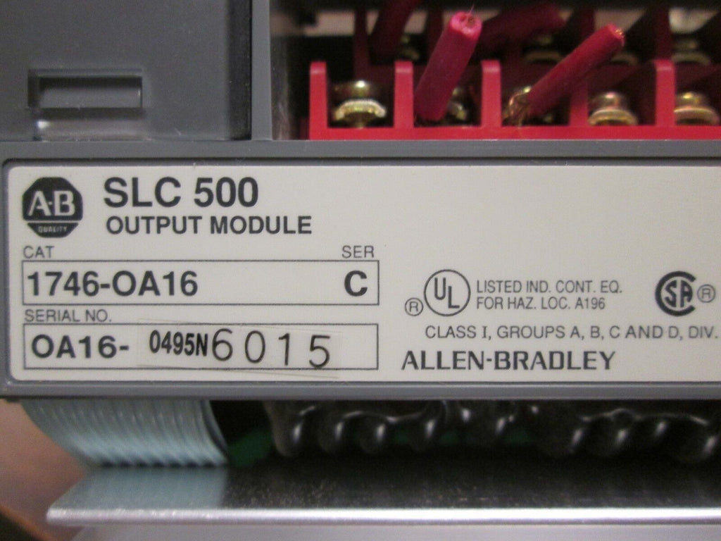 Allen-Bradley SLC 500 Output Module 1746-OA16 Ser C 85-265V 50/60Hz Used_x000D_ Condition: UsedMPN: 1746-OA16Brand: Allen-BradleyController Platform: SLC 500 Allen-Bradley SLC 500 Output Module 1746-OA16 Ser C 85-265V 50/60Hz Used Allen-Bradley SLC 500 Output ModulePart # 1746-OA16 Ser C 85-265V 50/60Hz UsedLOC 21E4-22 Allen-Bradley SLC 500 Output Module Part # 1746-OA16 Ser C 85-265V 50/60Hz Uséd LOC 21E4-22