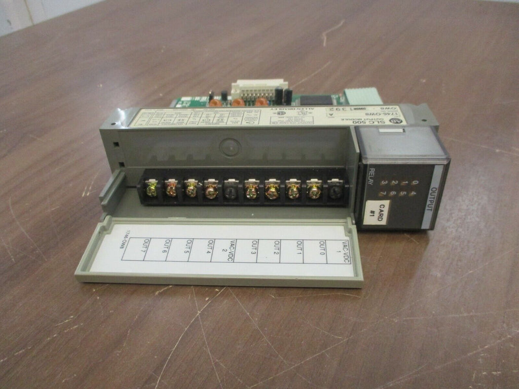 Allen-Bradley SLC 500 Output Module 1746-OW8 Ser. A 10-250VAC 10-125VDC Used_x000D_ Condition: UsedController Platform: SLC 500MPN: 1746-OW8Brand: Allen-Bradley Allen-Bradley SLC 500 Output Module 1746-OW8 Ser. A 10-250VAC 10-125VDC Used Allen-Bradley SLC 500 Output Module Part #: 1746-OW8 Ser. A Output: 10-250VAC50/60Hz10-125VDCUsedLOC 10A4-27 Allen-Bradley SLC 500 Output Module Part #: 1746-OW8 Ser. A Output: 10-250VAC 50/60Hz 10-125VDC Uséd LOC 10A4-27