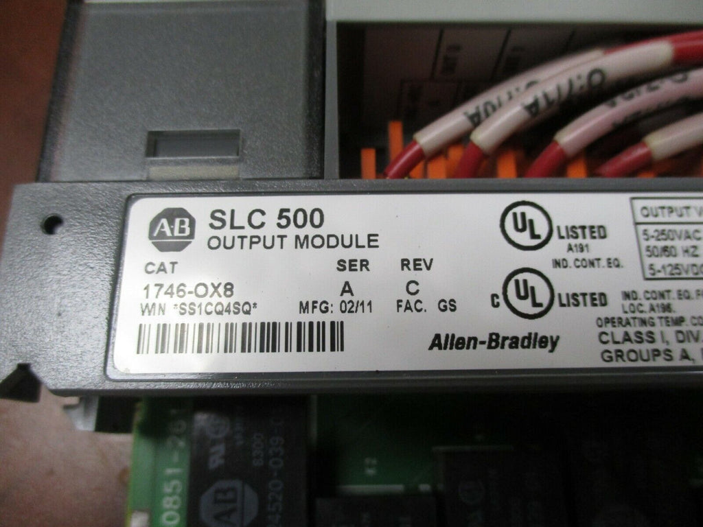 Allen-Bradley SLC 500 Output Module 1746-OX8 Ser. A Rev. C 5-250VAC 5-125VDC Condition: UsedMPN: 1746-OX8Brand: Allen-BradleyController Platform: SLC 500 Allen-Bradley SLC 500 Output Module 1746-OX8 Ser. A Rev. C 5-250VAC 5-125VDC Allen-Bradley SLC 500 Output Module Part #: 1746-OX8 Ser. A Rev. C 5 - 250VAC 5 - 125VDCUsedLOC 3J4-36 Allen-Bradley SLC 500 Output Module Part #: 1746-OX8 Ser. A Rev. C 5 - 250VAC 5 - 125VDC Uséd LOC 3J4-36