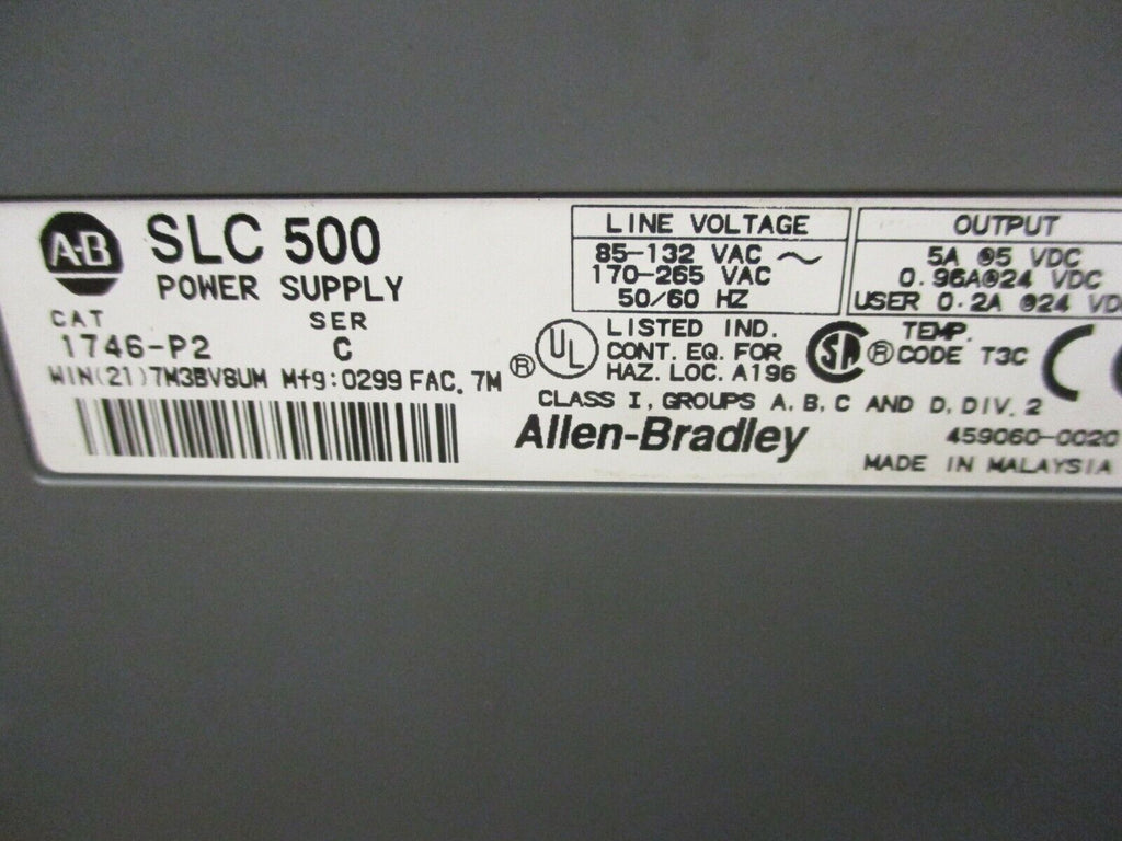 Allen-Bradley SLC 500 PLC Rack w/ Power Supply 1746-A10/1746-P2 10-Slot, Used_x000D_ Condition: UsedMPN: 1746-A10/1746-P2Brand: Allen-BradleyController Platform: SLC 500 Allen-Bradley SLC 500 PLC Rack w/ Power Supply 1746-A10/1746-P2 10-Slot, Used Allen-Bradley SLC 500 PLC Rack w/ Power Supply Part # 1746-A10/1746-P2 10-Slot Used*Chipped Cover*LOC 25C1-3 Allen-Bradley SLC 500 PLC Rack w/ Power Supply Part # 1746-A10/1746-P2 10-Slot Uséd *Chipped Cover* LOC 25C1-3