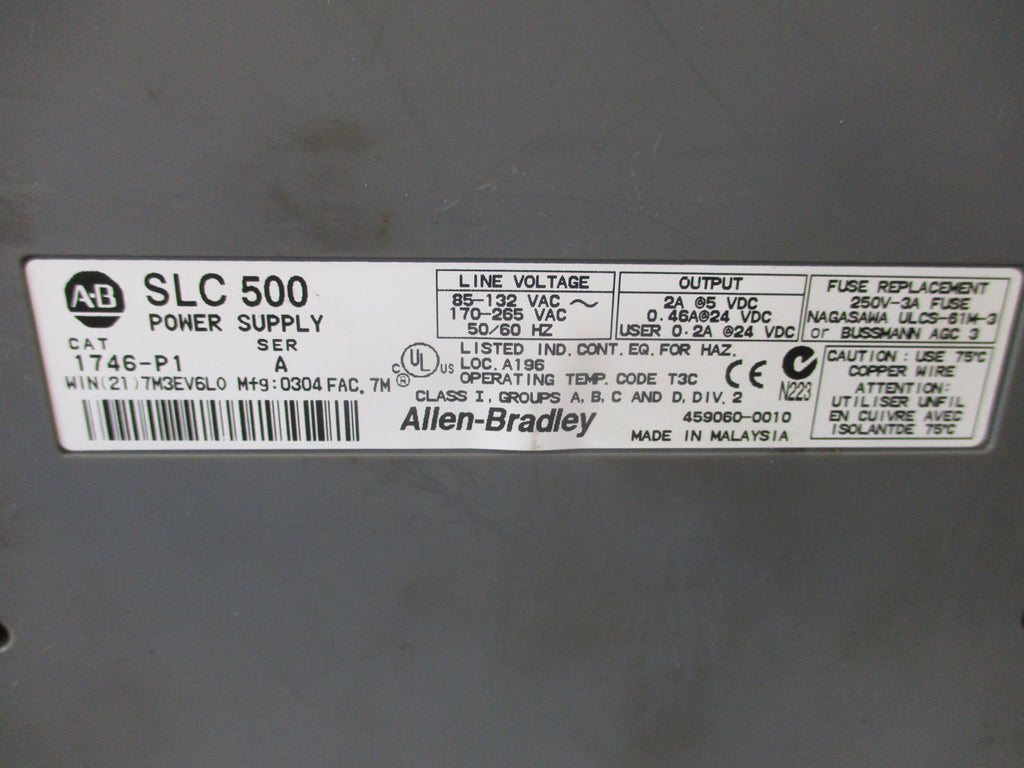 Allen-Bradley SLC 500 PLC Rack w/ Power Supply 1746-A7 / 1746-P1 7-Slot *Missing Power Supply Cover* *Broken Power supply Case* Used LOC 10E4-65