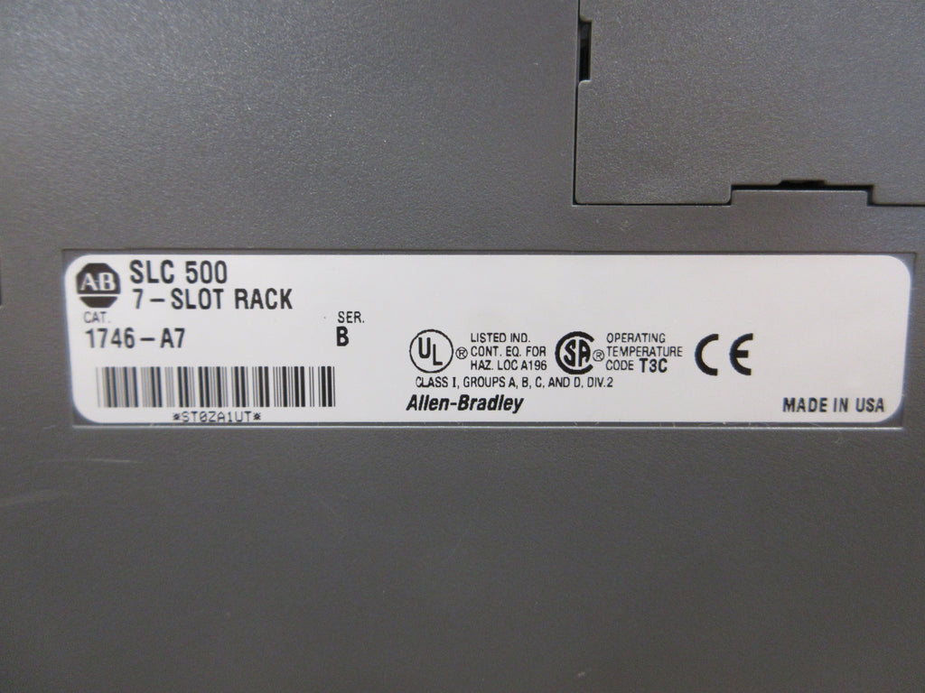 Allen-Bradley SLC 500 PLC Rack w/ Power Supply 1746-A7 / 1746-P1 7-Slot Used