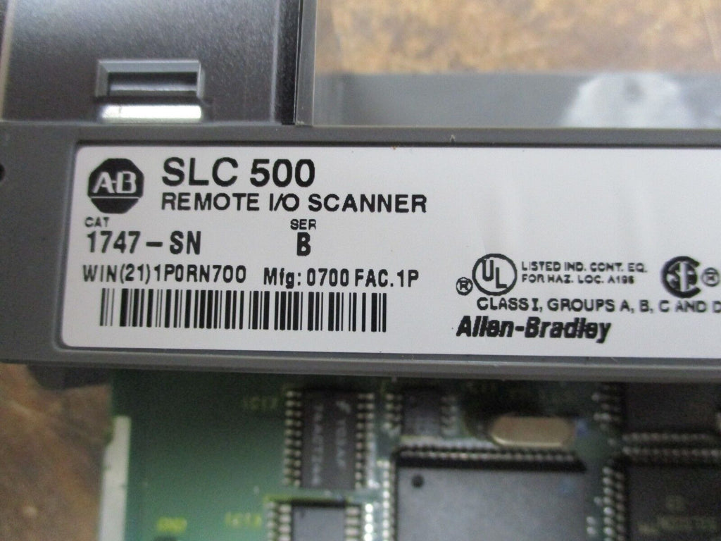 Allen-Bradley SLC500 Remote I/O Scanner 1747-SN Ser. B Host FRN:1.0b Used_x000D_ Condition: UsedMPN: 1747-SNBrand: Allen-Bradley Allen-Bradley SLC500 Remote I/O Scanner 1747-SN Ser. B Host FRN:1.0b Used Allen-Bradley SLC500 Remote I/O Scanner Part #: 1747-SN Ser. B Host FRN: 1.0b Plug FRN: 425062216600mA @ 5VDC*Missing Terminal Cover*UsedLOC 10F5-35 Allen-Bradley SLC500 Remote I/O Scanner Part #: 1747-SN Ser. B Host FRN: 1.0b Plug FRN: 425062216 600mA @ 5VDC *Missing Terminal Cover* Uséd LOC 10F5-35