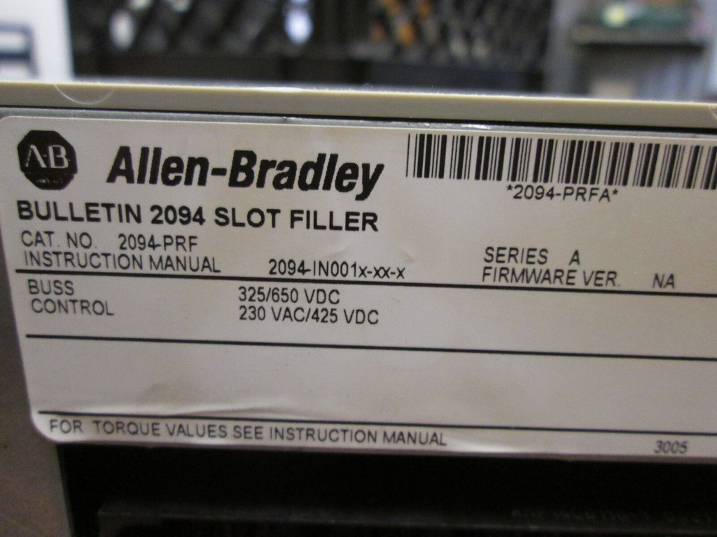 Allen-Bradley Slot Filler Part #: 2094-PRF Buss: 325/650VDC Control: 230VAC/425VDC Used LOC 17F4-5
