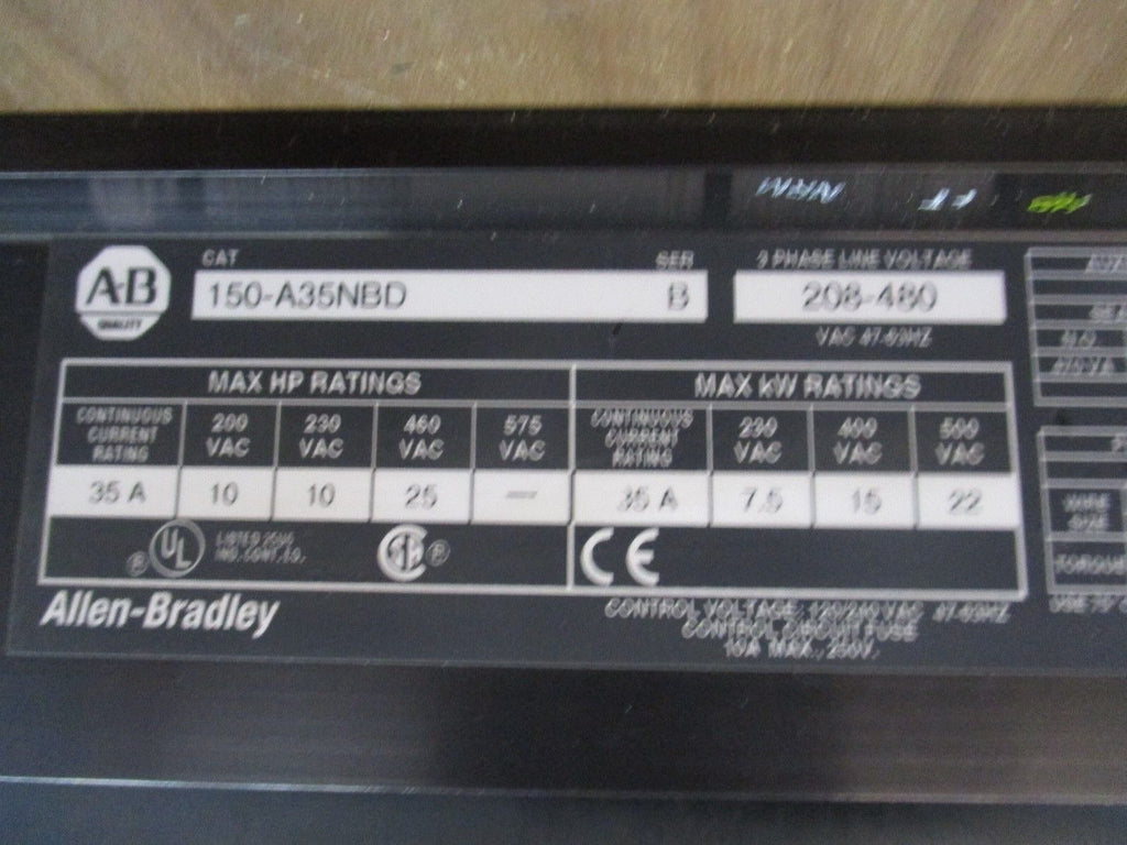 Allen-Bradley SMC Dialog Plus Soft Start 150-A35NBD Ser. B 25HP 208-480V 35A Condition: UsedInput Voltage: 208-480 VMPN: 150-A35NBDRated Load: 25 HPBrand: Allen-Bradley Allen-Bradley SMC Dialog Plus Soft Start 150-A35NBD Ser. B 25HP 208-480V 35A Allen-Bradley SMC Dialog Plus Soft Start Part #: 150-A35NBD Ser. B 25 HP 208-480 V 35 A Used Loc: 17E4-27 Allen-Bradley SMC Dialog Plus Soft Start Part #: 150-A35NBD Ser. B 25 HP 208-480 V 35 A Uséd Loc: 17E4-27