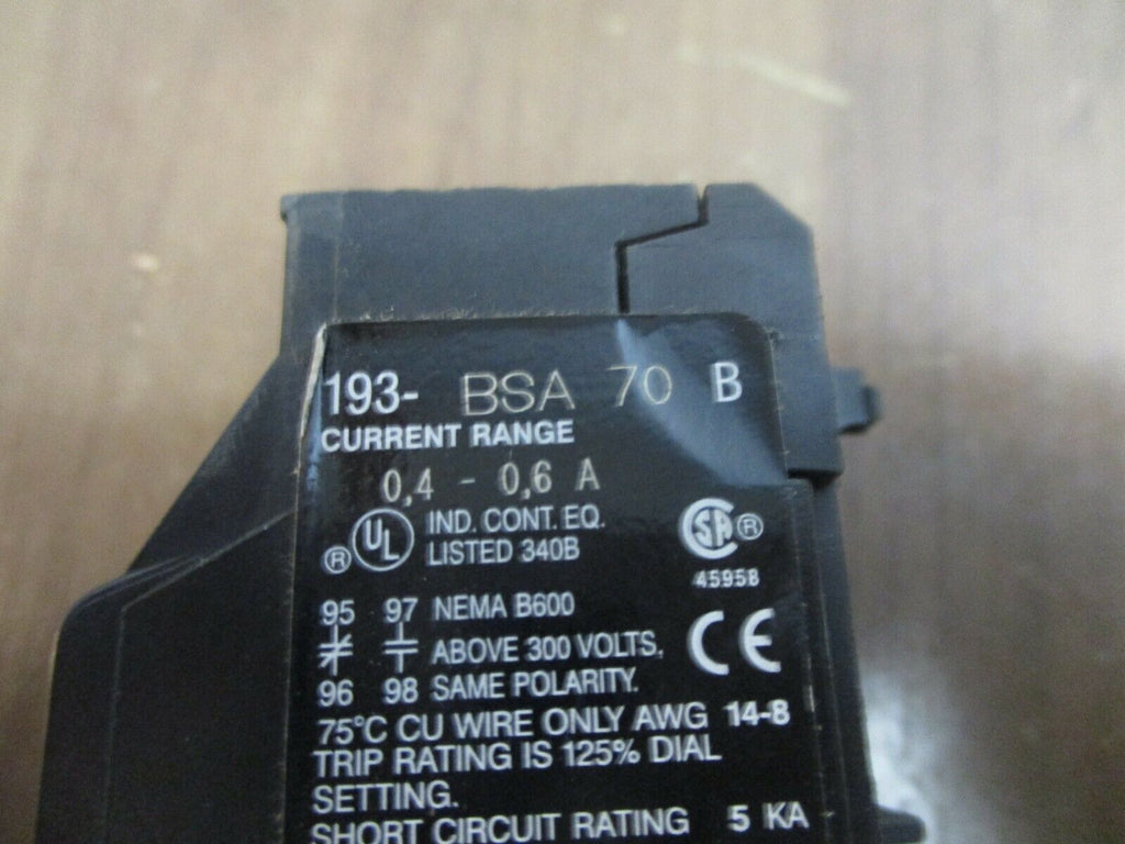 Allen-Bradley Solid State Overload 193-BSA70 Ser. B Trip: 0.40-0.60A New Surplus