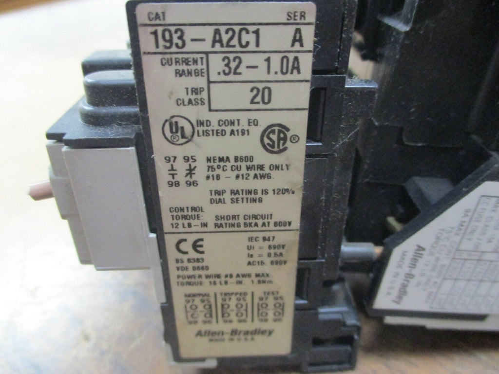 Allen-Bradley Starter 100-A09NZ*3/193-A2C1 24VDC Coil 9A 600V Trip: 0.32-1.0A Condition: UsedMPN: 100-A09NZ*3/193-A2C1Brand: Allen-Bradley Allen-Bradley Starter 100-A09NZ*3/193-A2C1 24VDC Coil 9A 600V Trip: 0.32-1.0A Allen-Bradley Starter Part #: 100-A09NZ*3 / 193-A2C1 24VDC Coil 9A 600V Trip: 0.32 - 1.0AUsedLOC 11C4-35 Allen-Bradley Starter Part #: 100-A09NZ*3 / 193-A2C1 24VDC Coil 9A 600V Trip: 0.32 - 1.0A Uséd LOC 11C4-35