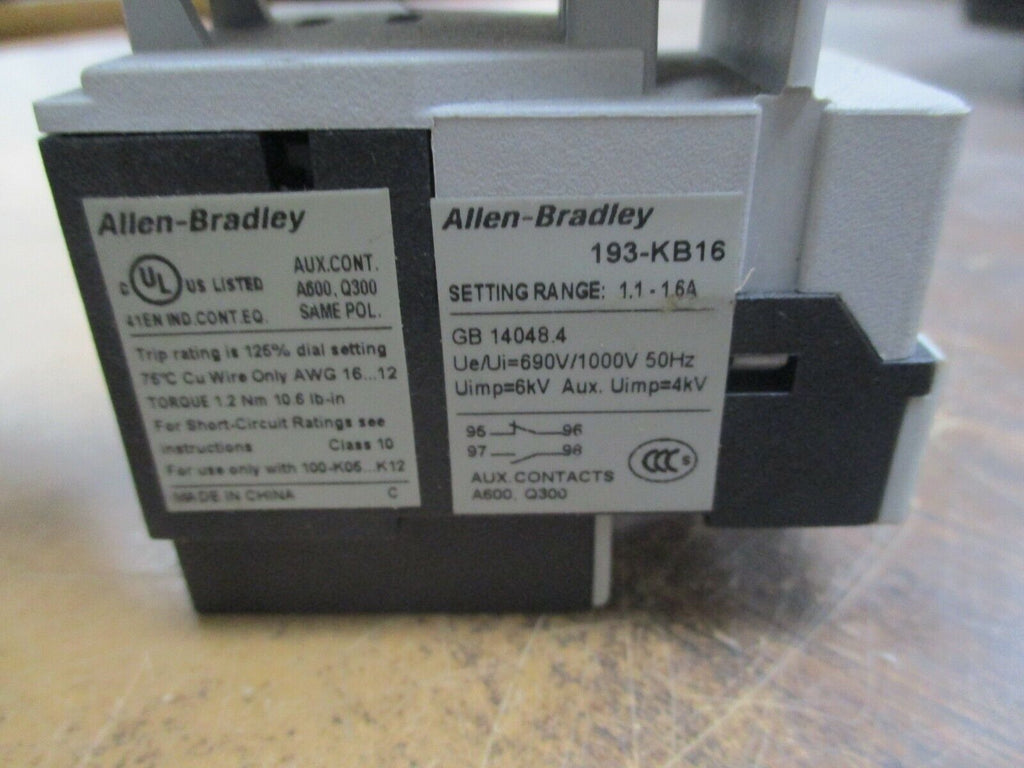Allen-Bradley Starter 100-A09NZ*3/193-KB16 24VDC Coil 9A 600V Trip:1.1-1.6A Used_x000D_ Condition: UsedMPN: 100-A09NZ*3/193-KB16Brand: Allen-Bradley Allen-Bradley Starter 100-A09NZ*3/193-KB16 24VDC Coil 9A 600V Trip:1.1-1.6A Used Allen-Bradley Starter Part #: 100-A09NZ*3 / 193-KB16 24VDC Coil 9A 600V Trip: 1.1-1.6A UsedLOC 11C4-30 Allen-Bradley Starter Part #: 100-A09NZ*3 / 193-KB16 24VDC Coil 9A 600V Trip: 1.1-1.6A Uséd LOC 11C4-30