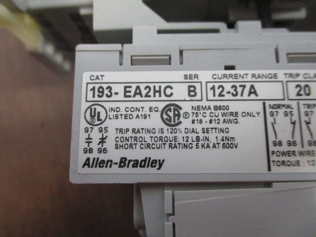 Allen-Bradley Starter 100-C37*00/193-EA2HC 120V Coil Trip: 12-37A w/ Aux Contact