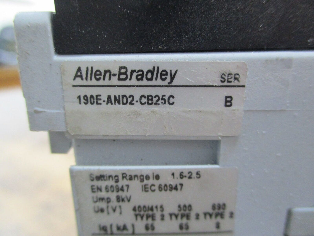 Allen-Bradley Starter 190E-AND2-CB25C 120V Coil 25A 600V Trip: 1.6-2.5A Used_x000D_ Condition: UsedBrand: Allen-BradleyMPN: 190E-AND2-CB25C Allen-Bradley Starter 190E-AND2-CB25C 120V Coil 25A 600V Trip: 1.6-2.5A Used Allen-Bradley Starter Part #: 190E-AND2-CB25C 120V Coil 25A 600V Trip: 1.6-2.5A UsedLOC 15E4-36 Allen-Bradley Starter Part #: 190E-AND2-CB25C 120V Coil 25A 600V Trip: 1.6-2.5A Uséd LOC 15E4-36