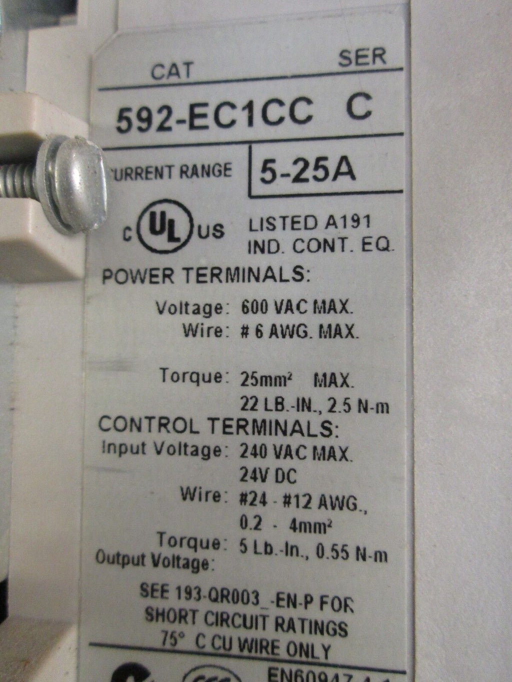 Allen-Bradley Starter 509-COD-EC1C-90 Size 2 115-120V Coil Overload: 5-25A Used_x000D_ Allen-Bradley Starter Part #: 509-COD-EC1C-90 Size 2 115 - 120V Coil Overload: Part #: 592-EC1CC5 - 25A UsedLOC 18G2-2_x000D_ Allen-Bradley Starter _x000D_ Part #: 509-COD-EC1C-90 _x000D_ Size 2 _x000D_ 115 - 120V Coil _x000D_ Overload: _x000D_ Part #: 592-EC1CC_x000D_ 5 - 25A _x000D_ Uséd_x000D_ _x000D_ _x000D_ _x000D_ _x000D_ _x000D_ _x000D_ _x000D_ _x000D_ _x000D_ _x000D_ _x000D_ _x000D_ _x000D_ _x000D_ _x000D_ _x000D_ _x000D_ _x000D_ _x000D_ _x000D_ LOC 18G2-2_x000D_