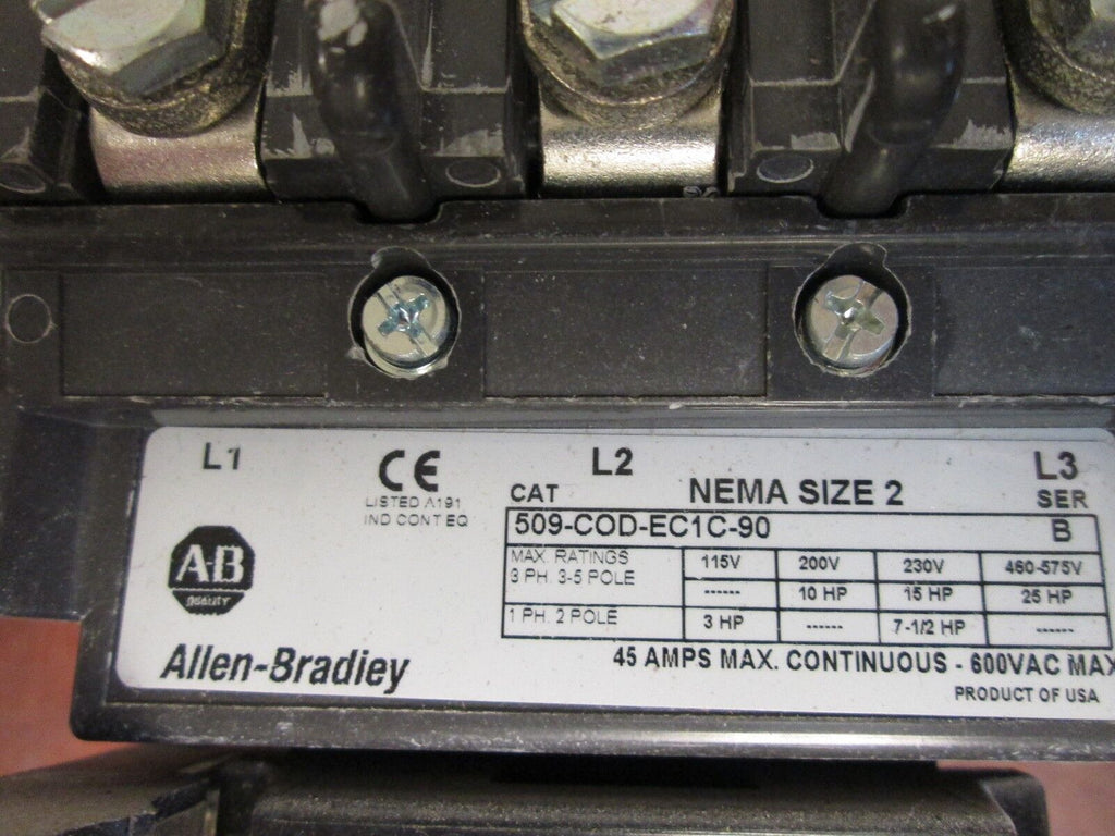 Allen-Bradley Starter 509-COD-EC1C-90 Size 2 115-120V Coil Overload: 5-25A Used