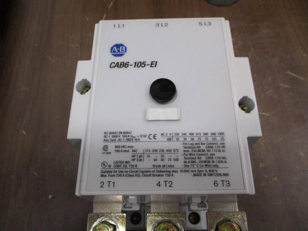 Allen-Bradley Starter CAB6-105-EI / 193-A5M5 380-400V Coil Trip: 57-180A 600V_x000D_ Condition: UsedBrand: Allen-BradleyMPN: CAB6-105-EI / 193-A5M5 Allen-Bradley Starter CAB6-105-EI / 193-A5M5 380-400V Coil Trip: 57-180A 600V Allen-Bradley Starter Part #: CAB6-105-EI / 193-A5M5 380-400 V Coil Trip: 57-180 A 600 V*No Terminal Cover* Used Loc: 27E5-5 / 27D5 Allen-Bradley Starter Part #: CAB6-105-EI / 193-A5M5 380-400 V Coil Trip: 57-180 A 600 V *No Terminal Cover* Uséd Loc: 27E5-5 / 27D5