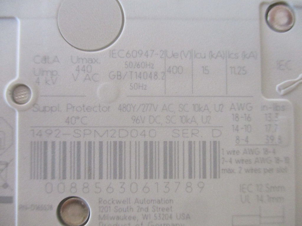 Allen-Bradley Supplementary Protector 1492-SPM2D040 Ser. D 4A ...