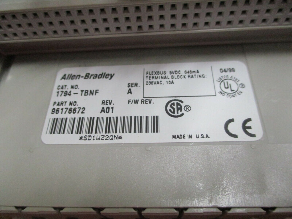 Allen-Bradley Terminal Base 1794-TBNF Ser. A Rev. A01 Used_x000D_ Condition: UsedMPN: 1794-TBNFBrand: Allen-Bradley Allen-Bradley Terminal Base 1794-TBNF Ser. A Rev. A01 Used Allen-Bradley Terminal Base Part #: 1794-TBNF Ser. A Rev. A01 UsedLOC 17A5-64 Allen-Bradley Terminal Base Part #: 1794-TBNF Ser. A Rev. A01 Uséd LOC 17A5-64