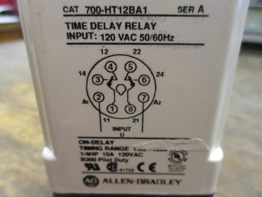 Allen-Bradley Time Delay Relay w/ Base 700-HT12BA1 120V 50/60Hz Range: 1-180 sec Allen-Bradley Time Delay Relay w/ Base Part #: 700-HT12BA1 120V 50/60Hz Range: 1-180 secUsedLOC 24E5-16 Allen-Bradley Time Delay Relay w/ Base Part #: 700-HT12BA1 120V 50/60Hz Range: 1-180 secUsédLOC 24E5-16