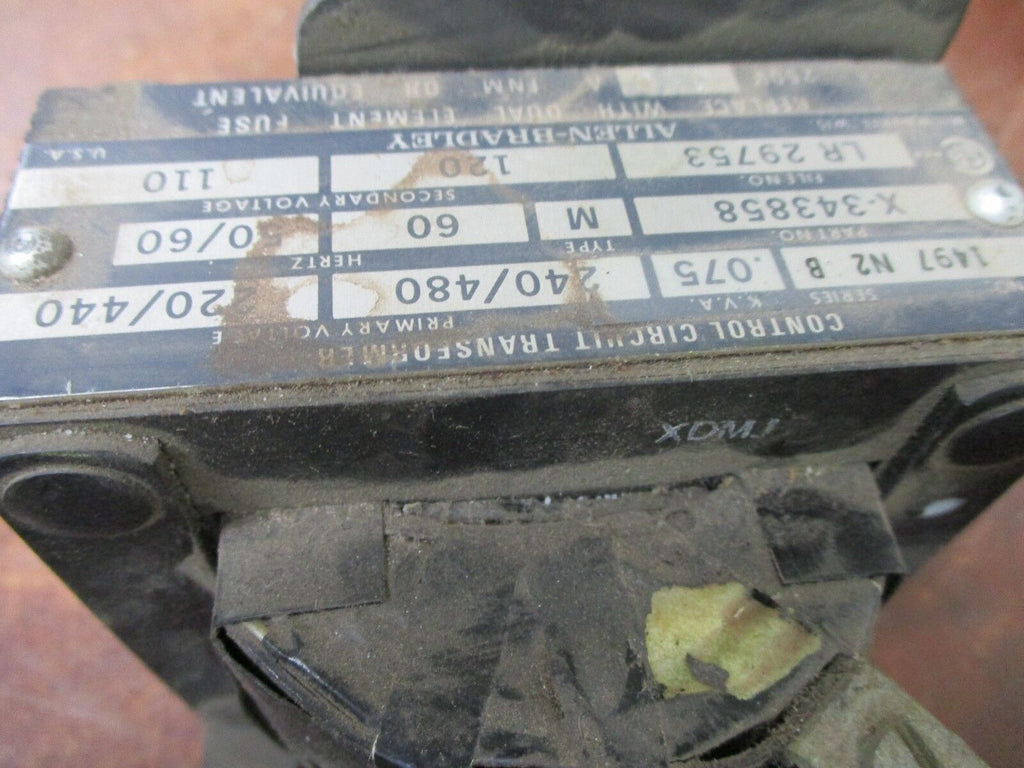Allen-Bradley Type M Control Transformer X-343858 0.075KVA Pri:240/480V Sec:120V