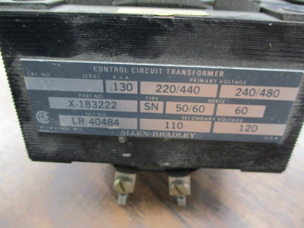 Allen-Bradley Type SN Control Transformer X-183222 0.130KVA 60Hz Used