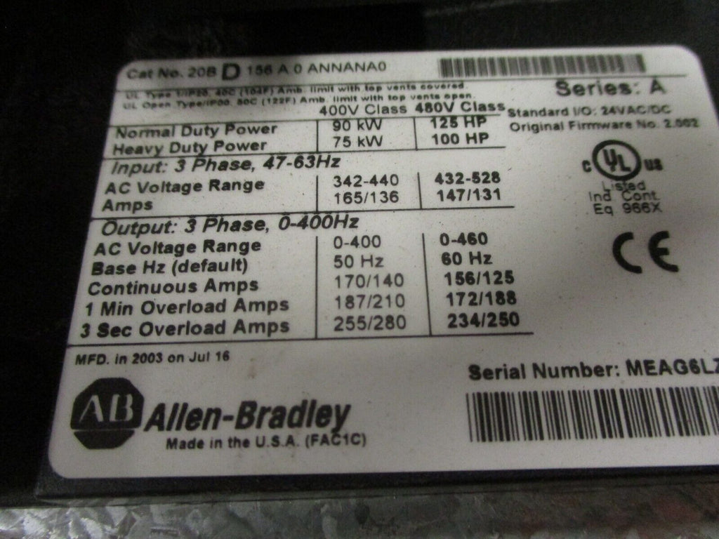 Allen-Bradley VTAC 9 / PowerFlex 700 AC Drive 20BD156A0ANNANA0 125HP 3Ph Used