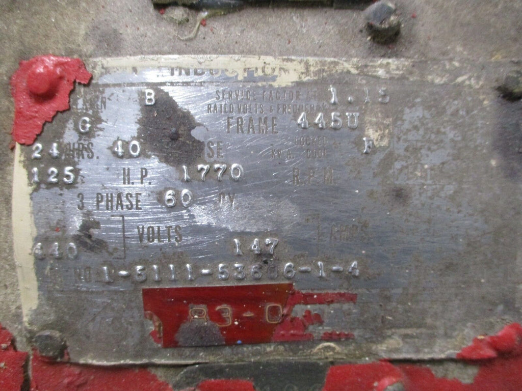 Allis AC Motor 125HP 1800RPM 440V 147A 60Hz 3Ph 445U Frame Used