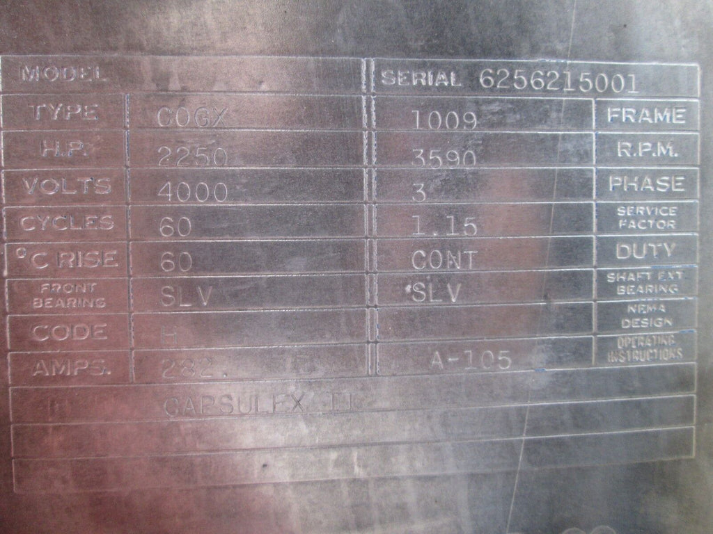 Allis AC Motor Part #: COGX 2250HP 3590RPM 4000V 282A 1009 Frame 3Ph Used LOC PL-34