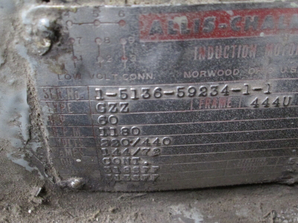 Allis-Chalmers AC Motor GZZ 60HP 1200RPM FR: 444U 220/440V 144/72A Used