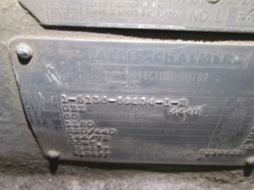 Allis-Chalmers AC Motor GZZ 60HP 1200RPM FR:444U 220/440V 144/72A Used