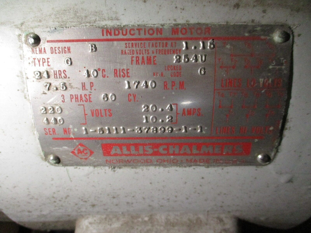 Allis-Chalmers Motor 7.5HP 1800RPM 220/440V 20.4/10.2A 60Hz 3Ph Used