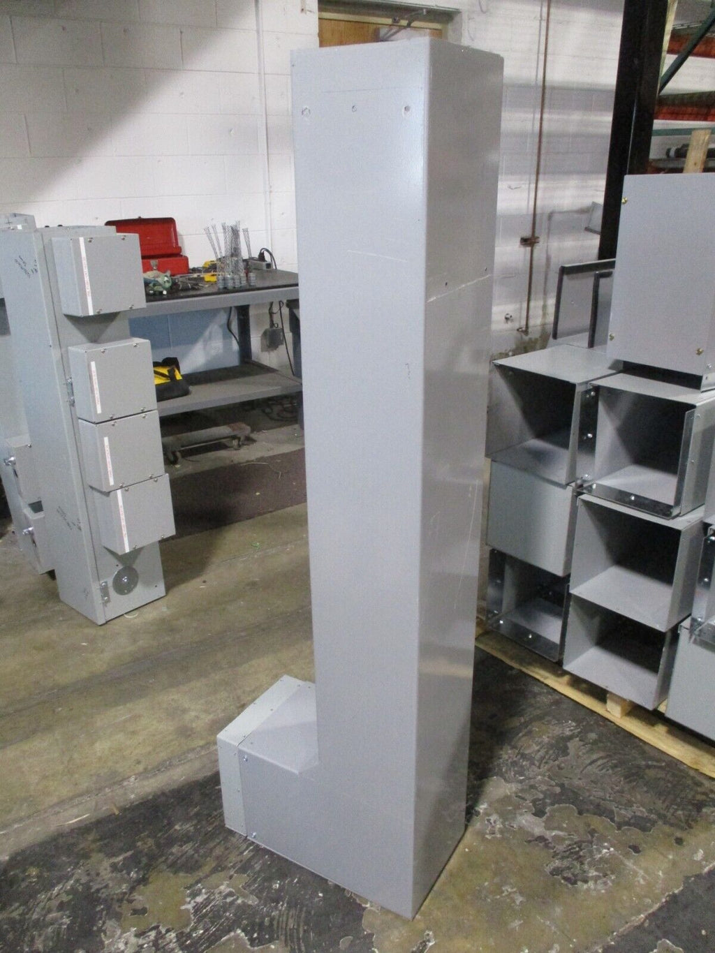 AMP Wireway w/ 90° Elbow End Length: 60" Long End: 10" x 8"Elbow End: 10" x 10" *No Cover* UsedLOC AB39L4-3- AMP Wireway w/ 90° Elbow End