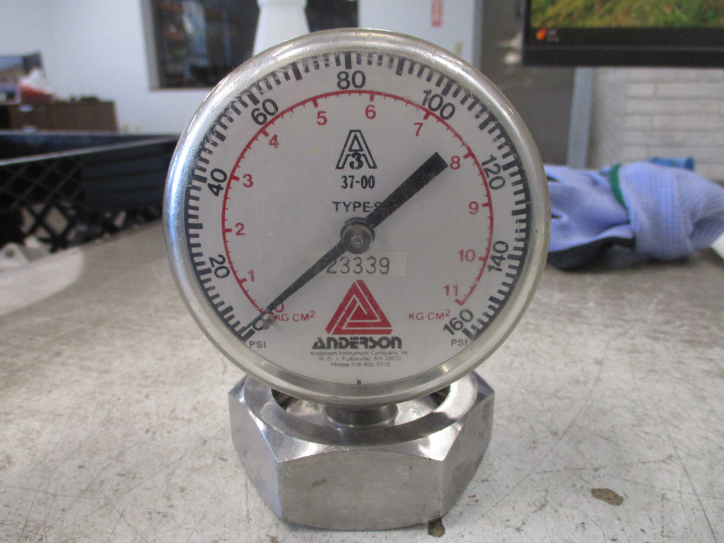 Anderson Type S Stainless Steel Pressure Gauge 37-00 Range: 0-160PSI Used LOC 60F2-30