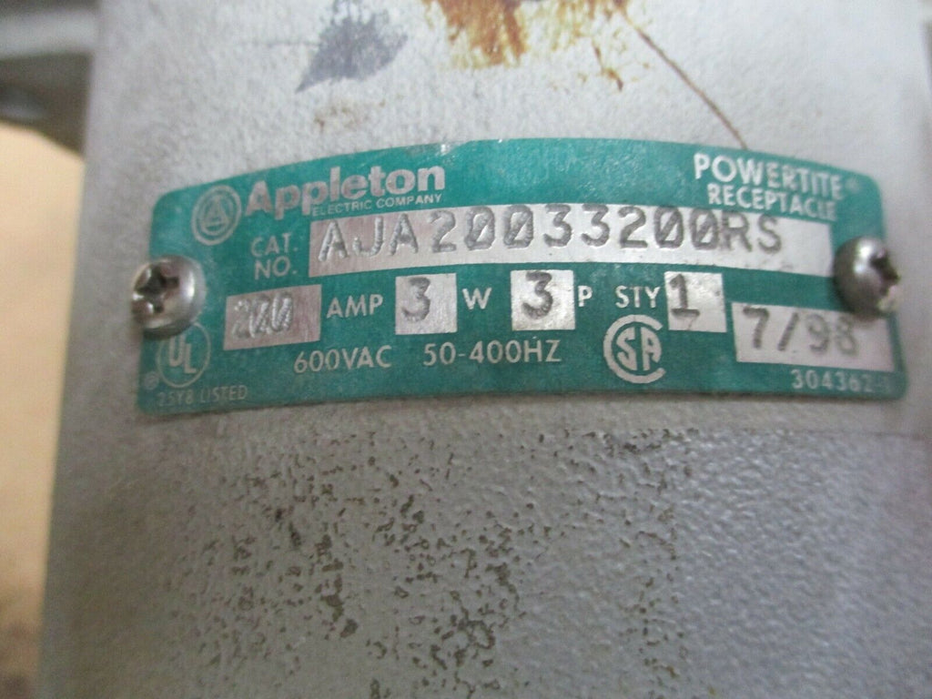 Appleton Powertite Receptacle AJA20033200RS 200A 600V 3W 3P Used